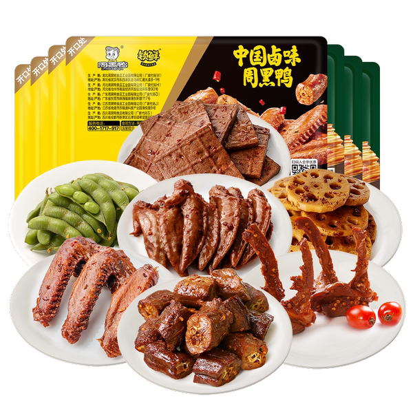 7.9[\u1f697]一盒的周黑鸭快屯 多款可以拍实体店一盒[\u1d7d1][\u1d7ce]+ 荤素都有拍5盒[\u1f4b0]39.9甜辣口越吃越上瘾 屯点在家追剧吃配上快乐水真的超爽!