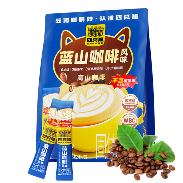 四只猫 蓝山卡布云南速溶咖啡粉提神纯美式黑咖啡30条/袋官方正品