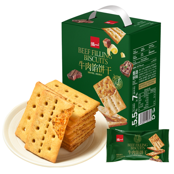 【下拉详情页金币到手18】泓一牛肉馅夹心饼干,薄脆咸味网红追剧解馋零食休闲食品礼盒整箱