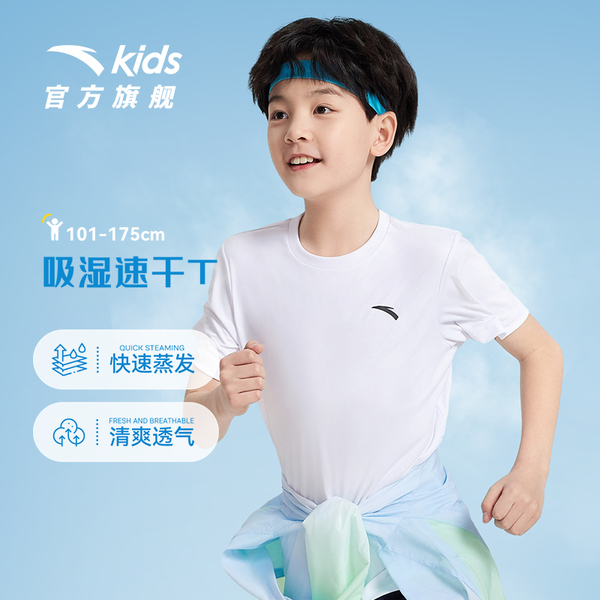 【10点开始有礼金补贴7元,消费券抵扣4元,最终单件到时候29元左右】安踏儿童短袖T恤男童2026夏季新款,面料轻透速干,专业吸汗排汗。