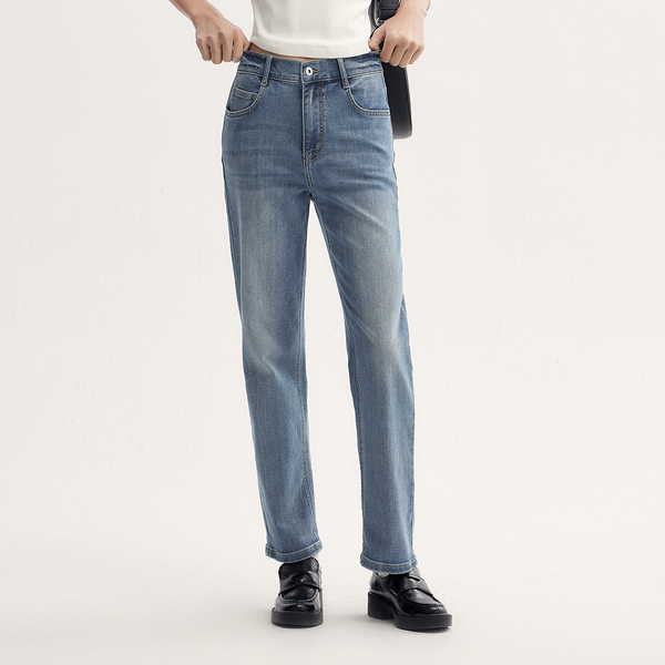 森马牛仔裤女复古简约长裤