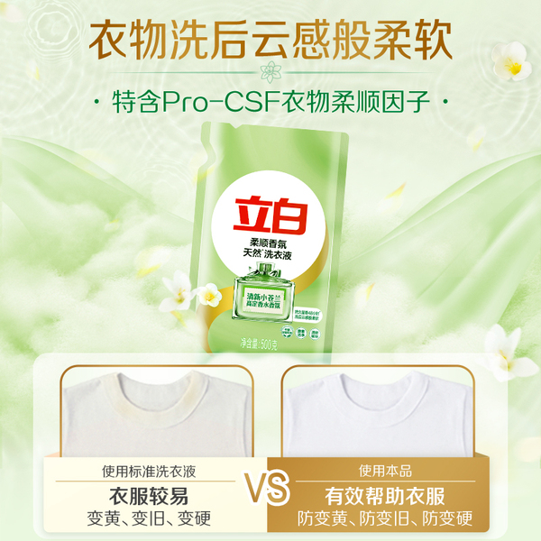 【秒杀】立白小苍兰柔顺香氛持久洗衣液去污洗衣液2kg*1+500g*6袋